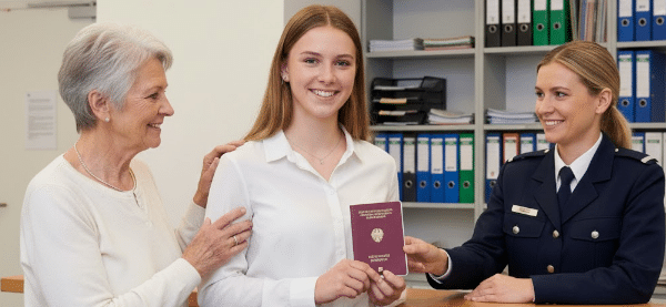 - Bei der Passstelle der deutschen Auslandsvertretung beantragen Sie Ihre deutschen Ausweispapiere. Sobald diese fertig sind, erhalten Sie eine Mitteilung zur Abholung.